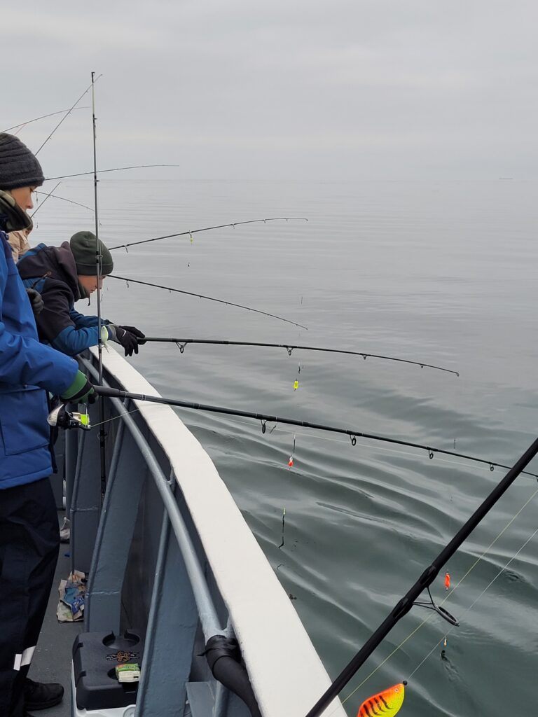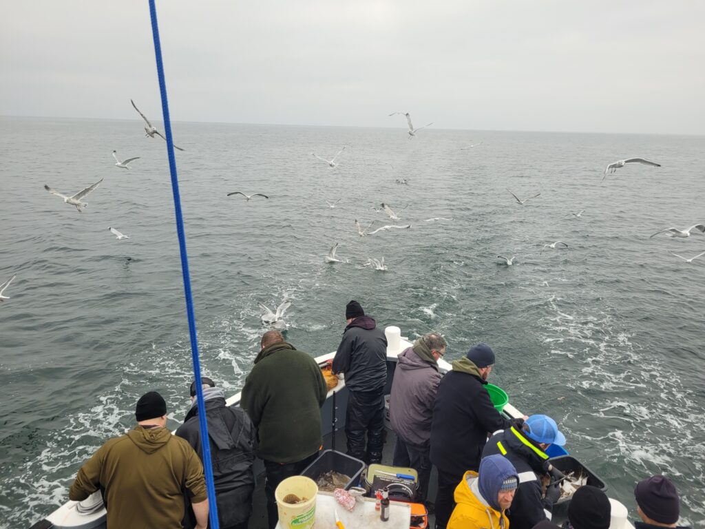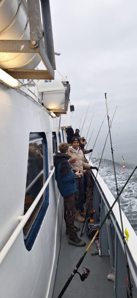 Tolles Highlight für unsere Jugendgruppe: Dennis und André haben eine Hochseeangeltour ab Fehmarn organisiert! Am 8. November ging es raus auf die Ostsee – mit vielen Jugendlichen und tatkräftiger Unterstützung durch die Erwachsenen. Da Bilder bekanntlich mehr als tausend Worte sagen, lassen wir sie einfach für sich sprechen. Viel Spaß beim Anschauen! Es war ein klasse Tag.